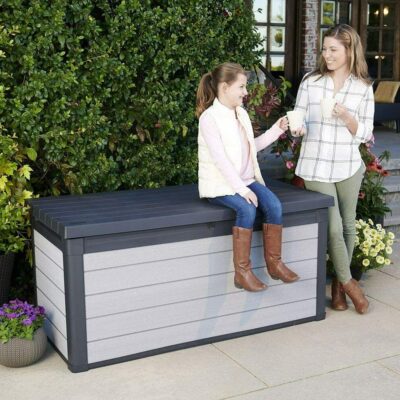 Denali 100 Gallon Resin Large Deck Box – Grey / Black